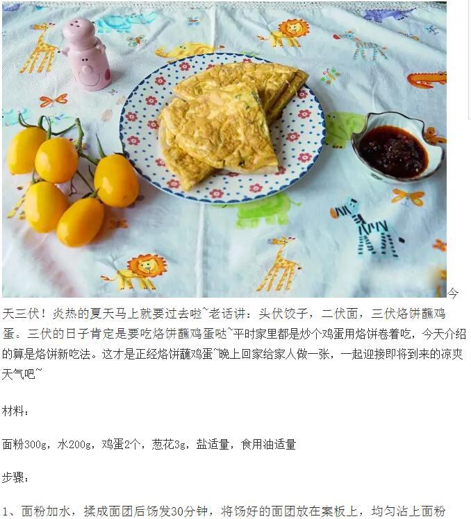 7、鍋燒熱倒入食用油,將打好的雞蛋倒入鍋里,剪至五成熟后倒入烙餅,雞蛋成熟后取出切塊即可