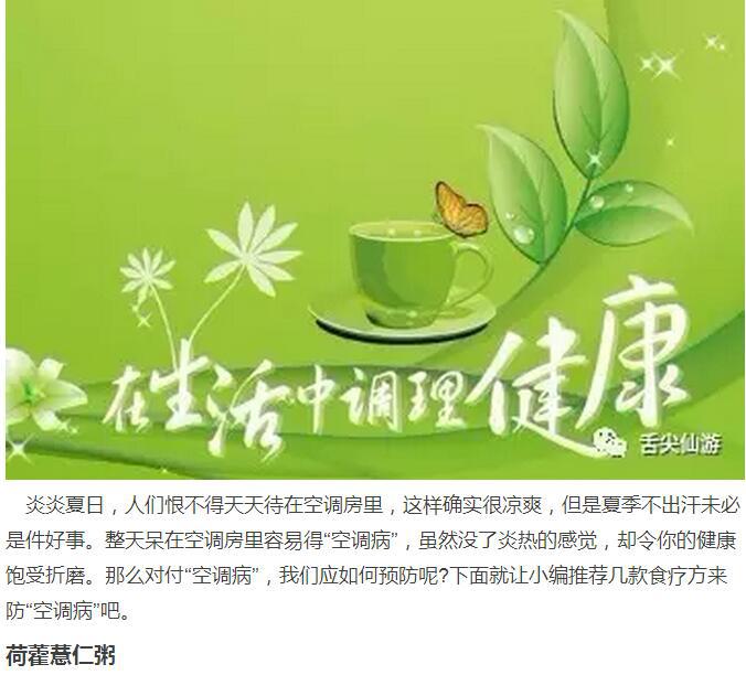 夏季空調(diào)病高發(fā) 巧用食療預(yù)防空調(diào)病